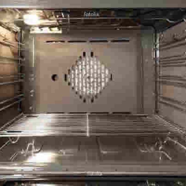 • The technician returns to the oven where our specially developed, caustic free formula is applied to the interior of the oven. Using our cleaning tools and some hard work, all traces of carbon,grease and fat are removed leaving the oven in an as new condition.